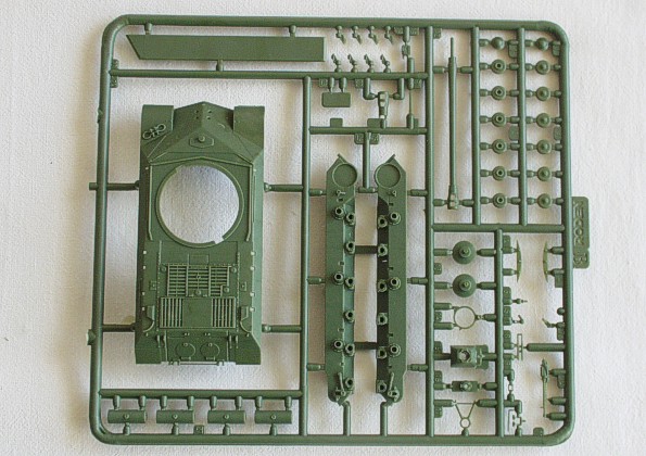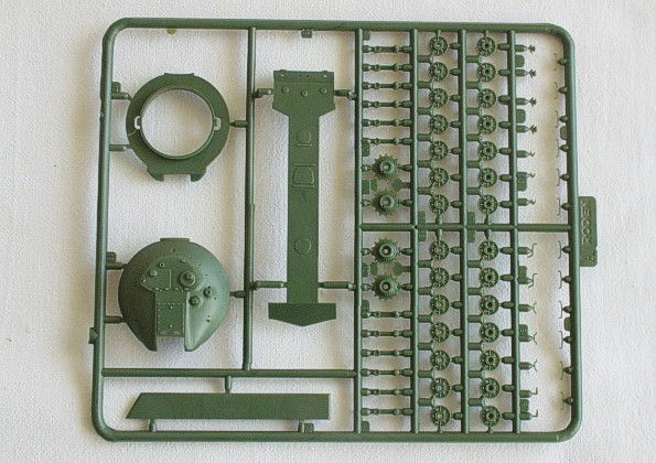 | Kvalita | Ve stavebnici najdete dva vylisované rámečky plné velice kvalitních dílů, na kterých nenajdete žádné otřepy, přelisky ani jiné podobné nedostatky. Všechny díly jsou velice jemné a snad krom držadel na věži bez problémů použitelné. Zmíněná držadla na věži doporučuji nahradit novými vyrobenými z drátu. Mě osobně na plastových dílech nepotěšilo pouze to, že všechny poklopy jsou realizované jako zavřené. Většinu modelářů asi také nepotěší gumové pásy. Ty jsou ale vyrobeny z velice jemné a dobře tvarovatelné gumy, takže by měly být bez větších problémů použitelné. |