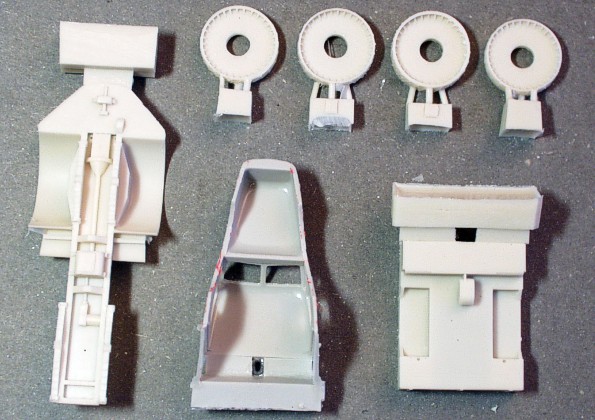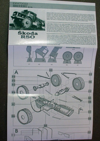 | Kvalita | Resinové díly jsou velice čistě odlity. Nenajdete na nich žádné bubliny a takřka žádné otřepy. Pokud nějaké otřepy přeci jen objevíte, tak jsou velice jemné a snadno odstranitelné. Kovová planžeta obsahuje jemně leptané drobné díly pro doplnění nejen exteriéru vozidla, ale i interiéru jeho kabiny. Posledním dílem stavebnice je arch průhledné fólie, na kterém najdete předtištěná všechna potřebná okna, takže se při jejich ”zasklívání” nebudete muset trápit s jejich měřením a překreslováním. |