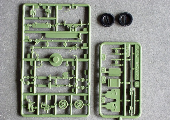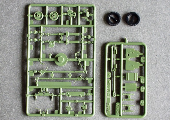 | Kvalita | Dva miniaturní rámečky, z nichž jeden je identický pro oba modely, druhý se odlišuje. Díly jsou vylisovány jemně a detailně. Dále modely obsahují pneumatiky z měkké gumy. Jako klad hodnotím to, že součástí modelu je bedna na munici a 4 ks nábojů, naopak model neobsahuje, bohužel, žádné figurky obsluhy. |