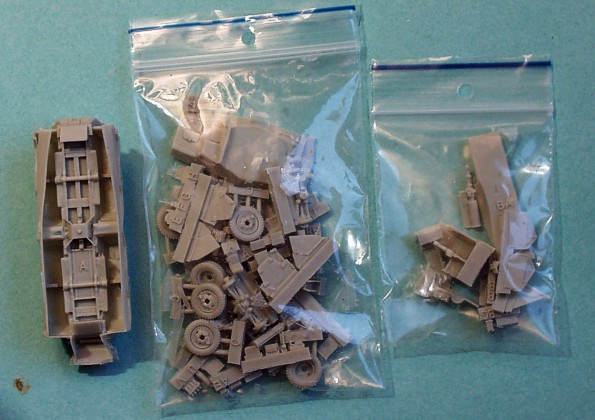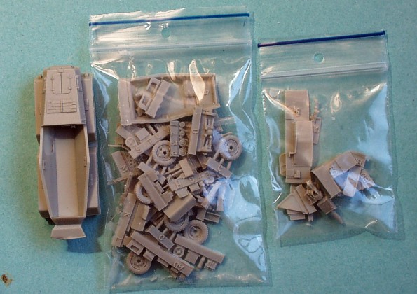 | Kvalita | Odlitky jsou kvalitní, bez otřepů a bublinek. Pouze na větších dílech (korba) je tenká blána resinu, to však zřejmě dané technologií odlévání a typem formy. Hmota se však zdá být křehčí. Model překvapí množstvím dílů a výborně ztvárněných detailů (podvozek). Téměř všechny poklopy a průzory lze postavit jako otevřené. Výborné je také detailní provedení hlavní zbraně vozidla, 75mm kanónu. |