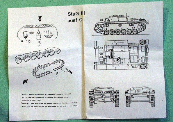 Vzhledem k většímu množství dílů zalitých v resinové bláně stavebnice na první pohled nevypadá nic moc. Nicméně se však domnívám, že z této stavebnice lze celkem rychle a jednoduše postavit pěkný model předposlední z “krátkohlavňových” verzí německého samohybného děla StuG III používaného v první polovině 2. sv. války. |