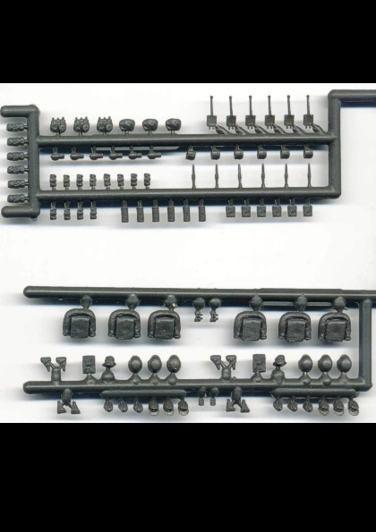 | Kvalita | Tento skvělý figurkový set obsahuje 5 rámečků s díly pro celkem 12 (2 x 6) figurek představujících německé pěšáky při odpočinku. Každá figurka je v podstatě samostatnou stavebnicí protože musí být sestavena z několika dílů. V setu tedy najdete samostatné trupy s hlavami, ruce se zbraněmi a nohy. Tři licí rámečky obsahují příslušenství společné pro všechny figurky. Najdete v nich zbraně, plechovky na masky, batohy, lopatky, alternativní pokrývky hlavy atd., kterými můžete figurky ověšet dle libosti. |
