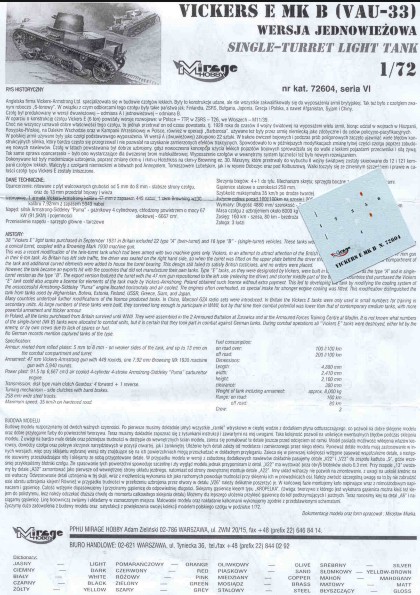 Vickers E (kit č. 72603) and jednověžový Vickers E (kit č. 72604) společná.