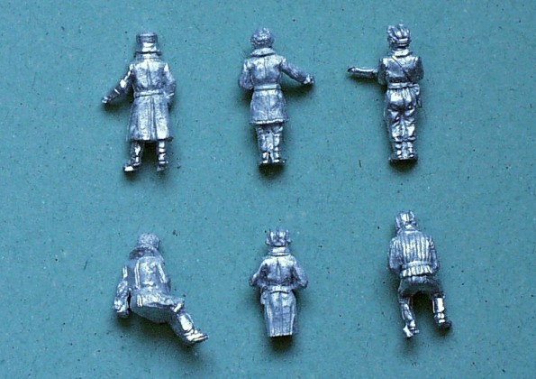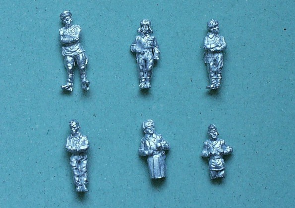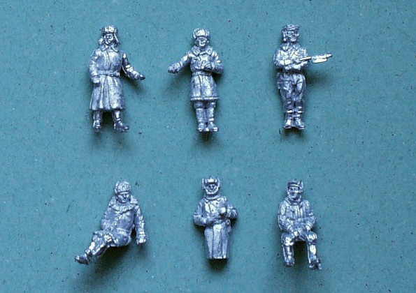| Kvalita | Každý z těchto tří setů obsahuje 6 figurek ruských tankistů z 2.sv.války v různých uniformách. V setu SOV 1 a SOV 2 najede po čtyřech figurkách kompletních a dvou “třičtvrtečních”. Set SOV 3 obsahuje tři stojící, dvě sedící a jednu “třičtvteční” figurku, všechny v zimních uniformách. Nohy většiny stojících figurek se mi zdají poněkud poddimenzovány, zřejmě proto, že se počítá s jejich “ukrytím” ve vnitřních prostorách modelů! J Figurky mají minimální množství přelitků a jsou velice detailně propracovány. |