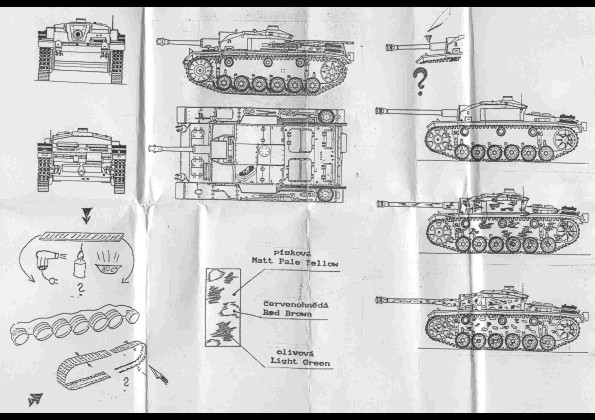 | Stavební návod | český a anglický návod, jak pracovat z resinovými modely, výkres vozidla a grafický návod aplikace pásů |