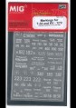 | Celkový dojem & Poznámka | Jedinečná věc pro nás, kteří nenávidíme klasické “mokré” obtisky. Měl bych tedy jen jednu malilililinkatou výhradu, respektive dvě. Poprosil bych pány z MIGu, aby na aršík zařadili i něco “nebílého”, např. červené nápisy pro zimní kamufláže. A ještě jedna prosba – škála suchých obtisků nabízených touto firmou v měřítku 1/35 je mnohem pestřejší, nešlo by vydat i ostatní obtisky také v malém měřítku? Děkuji MIG Productions a Milanovi za vzorek poskytnutý k recenzi. |