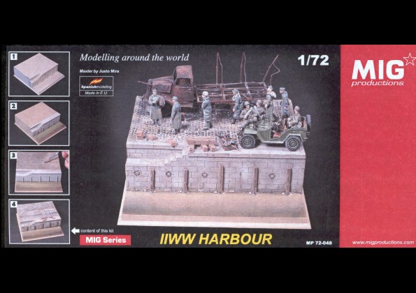 | Kvalita | V poměrně velké krabicí najdete podklad pro diorámu sestávající se pouze ze dvou dílů a několik drobných muničních beden jako doplněk. Kvalita odlitků se velmi vysoká a nenajdete na nich takřka žádné vady. Povrchové provedení dlažby a stěny mola je naprosto dokonalé. Hodně bude záležet na finálním barvením a to zejména u vodní hladiny! |