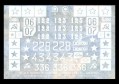 | Kvalita | Malý aršík propisotu (cca 5x8cm) obsahuje různá značení pro Sovětskou bojovku používanou za druhé sv. války. Obsahuje jak čísla, tak i různé nápisy a v několika variantách i hvězdy a srp a kladivo. Zatímco čísla a nápisy jsou určeny pro konkrétní vozidla (T-34/76, IS-2, ISU-122 a 152), zbytek je určen k volnému použití tam, kde se to modeláři hodí. Zajímavostí je, že část aršíku slouží nikoli jako standardní propisot, ale jako maska využívající této technologie. Čili chcete -li mít na svém modelu červenou hvězdu, nanesete masku na model klasickým způsobem, zakryjete okolí a přestříkáte požadovanou barvou. Po zaschnutí malým kouskem lepící pásky propisot odstraníte a rudá hvězda je na světě. |
