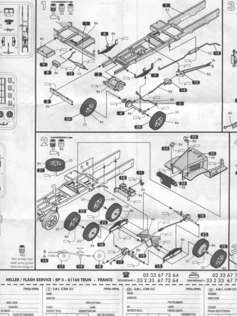 | Kvalita | Kvalita stavebnice je dobrá. Velkou vadou jsou však špatná přední kola (jen 5 děr místo 6 - viz. foto níže) Figurka řidiče není nic moc. K postavení dobrého modelu bude třeba něco málo doplnit. Heller využil prostor v krabici a přidal navíc také lepidlo, štětec a akrylové barvy Humbrol (33/86/102). |