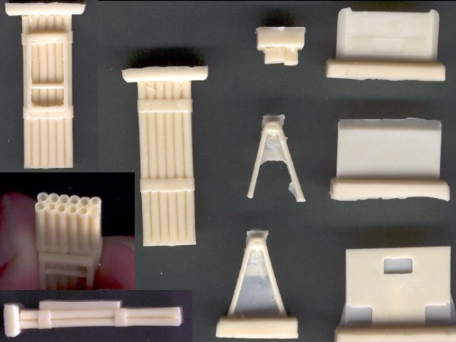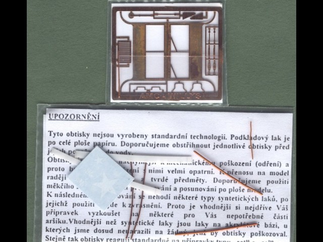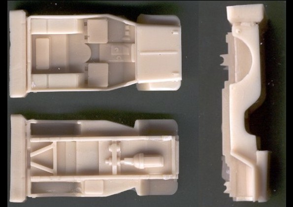 | Kvalita & Poznámka | Resinové díly jsou velmi čistě, bez bublin, pouze s minimem přelitků, odlity z krémového resinu. Oddělení jednotlivých dílů z nálitku by nemělo činit žádné potíže. Jedinou drobností, která mě zarazila, je poněkud nešťastné umístění nálitku na raketních. Po jeho odříznutí je totiž třeba všechny raketnice odvrtat. Lepty obsahují madla, zrcátka, rám čelního skla, mříž chladiče atd. Výrobce přikládá i tenké měděné dráty k výrobě jemnějších částí konstrukce odpalovacího zařízení. Já osobně je ale asi nahradím ocelovými dráty 0,25 a 1,0 mm, které jsou dle mého názoru vhodnější. |