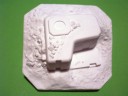 | Kvalita | Tato stavebnice obsahuje jeden masivní plný sádrový odlitek bunkru včetně ochranného valu a podkladu. Pominu-li absenci interiéru, tak je odlitek proveden velmi pěkně, včetně detailů betonového povrchu bunkru. Díky použitému materiálu lze lehce naznačit opotřebení bojem, např. stopy po kulkách atd. Dále kit obsahuje čtyři resinové díly odlité také velmi dobře. Věž tanku SOMUA pravděpodobně vychází ze stavebnice fy Heller. pro výrobu stupínků žebříku výrobce moudře přiložil svazek tenkého drátu. Poslední věc, kterou v krabičce najdete je sáček s travním posypem. Ten sice není nejhorší, ale já osobně preferuji trávu elektrostatickou. |
