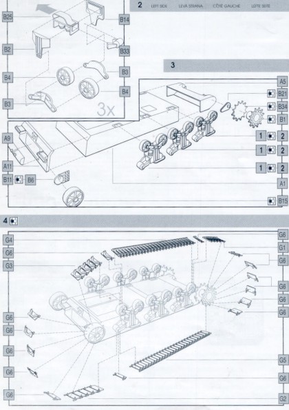 jsou v krabici. Jedna s naznačením umístění nýtů přídavného pancéřování (B7),