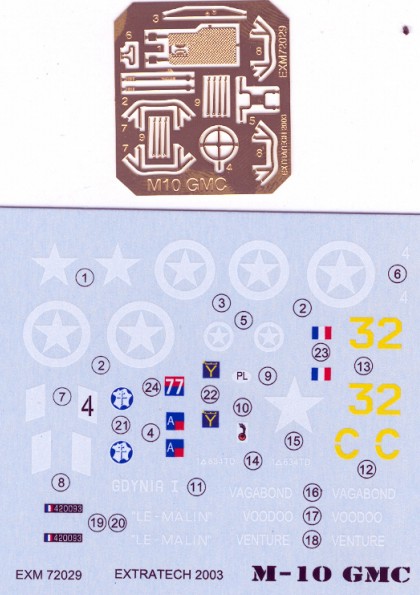obtisky pro šest vozidel, Americké, Polské a Francouzské. Obtisky jsou velmi