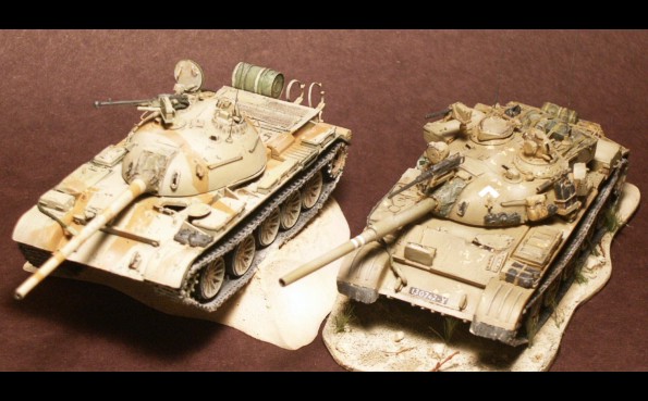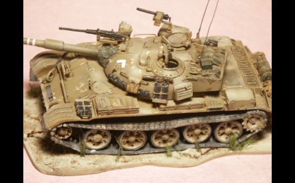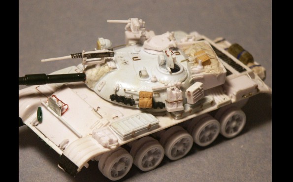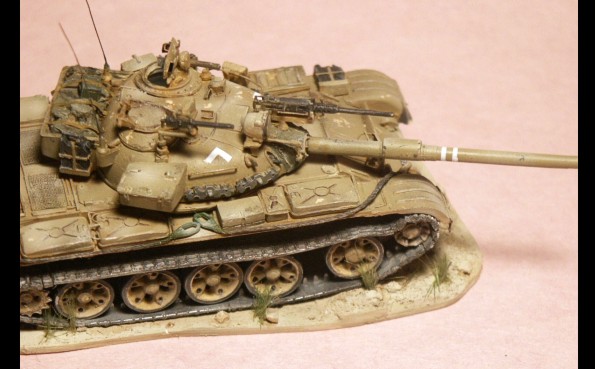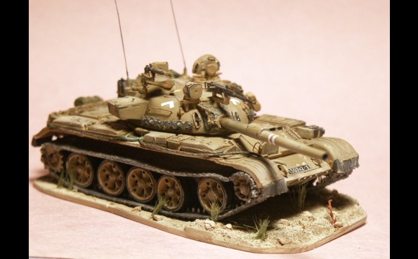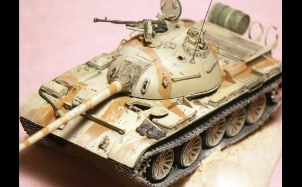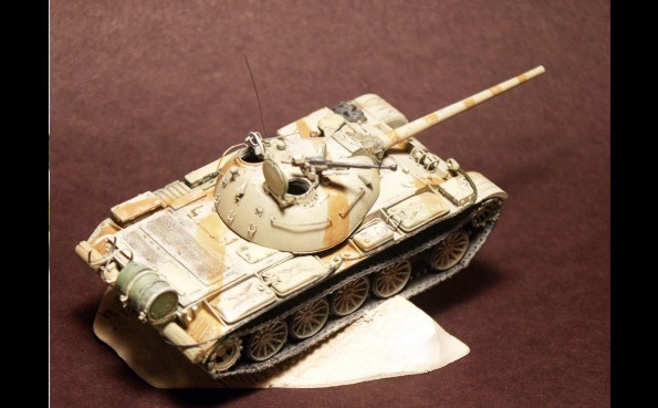 představuje sovětský tank přebarvený z původní zelené kamufláží do pouště.