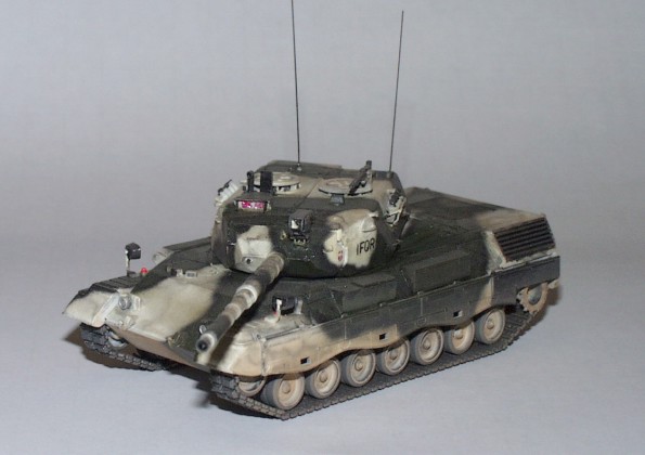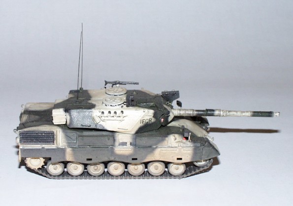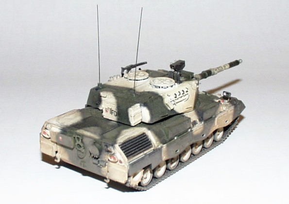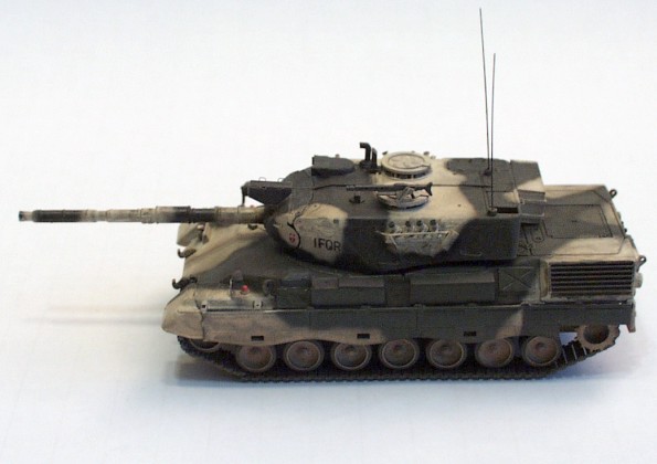 Fan. Model vznikl konverzí modelu Leopard 1A3/A4 Esci. Model je doplněn bednami na nářadí, novým zaměřovačem apod. dle konverze otištěné ve výše uvedeném časopisu. |