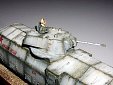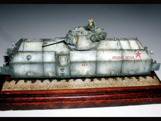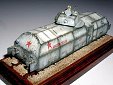 Měřítko: 1/72 Použitá stavebnice: Planet Models Resinový model pancéřové drezíny je odlit velice čistě a bez bublin. Model obsahuje rovněž i kovové díly a obtisky. Stavba je bezproblémová. Já jsem si ji zkomplikoval jen tím, že jsem se částečně snažil dle konkrétních fotografií přiblížit skutečnému vzhledu. Použil jsem novou věž z tanku KV 1 od PST, jelikož stavebnicová věž neodpovídala předloze, i když byla pěkně udělaná. Lepty jsem nepoužil a veškerá madla a stupačky jsem udělal z měděného drátku.Doplnil jsem z vlastních zdrojů celtu a figuru „průvodčího“ do věže. Kamufláž v návodu rovněž neodpovídala fotografiím a to hlavně v umístění nápisů a znaků. To, že jsou jinak naryté poklopy jsem neřešil, protože tato úprava mi připadala zbytečná a pracná. Výsledný efekt by nestál za námahu. Zimní kamufláž jsem tvořil tak, že jsem na původní zelenou barvu nastříkal bílou a ještě než zaschla jsem ji opatrně začal strhávat kartáčkem na zuby a štětcem namočeným v ředidle. Dále jsem patinoval olejovými barvami a celek zafixoval matným lakem. Drezína ve vitríně vypadá velice impozantně a brzy k ní přibude opět něco na kolejích. |
