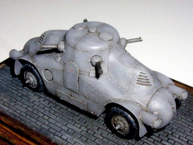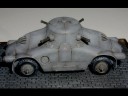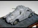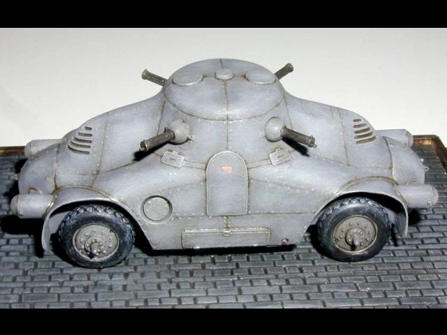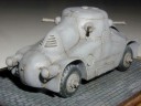 Měřítko: 1/76 Použitá stavebnice: Air Czech Stavebnice tohoto zajímavého předválečného obrněného automobilu je odlita z PUR. Smekám před výrobcem předlohy této stavebnice, protože takto zaoblený a ještě k tomu nanýtovaný obrněný vůz vyrobit nebyla jistě žádná sranda. Bohužel při výrobě předlohy byl zřejmě použit výkres z HPM, kde jsou obráceně poklopy, je to škoda, protože tato chyba jinak velice pěkně udělaný model kazí. Výrobce vycházel z dostupných materiálů, které nebyly správně a naletěl. Stavba byla bezproblémová. Na opravu poklopů jsem si netroufl, protože navázat na původní nýtování a rytí by mi přineslo víc práce než užitku a bylo by vidět. Můj model představuje vozidlo dodané rakouské policii. |