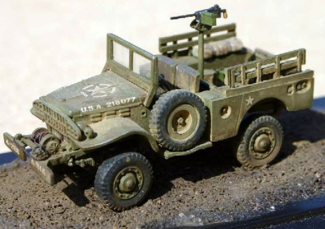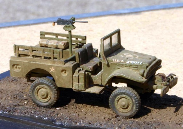 Měřítko: 1/72 Použitá stavebnice: ESCI /Italeri Model je doplněn stojanem s kulometem .30 a bednami a s plachtami vlastní výroby. čelní sklo je zaskleno pomocí čiré fólie. K nabarvení jsem použil Tamiya khaki Drab a na patinu wash olejovými barvami a pudry od Bragdon Powders. |
