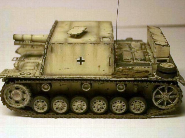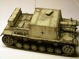 Měřítko: 1/72 Použitá stavebnice: Attack Model som postavil prakticky z krabičky doplnil som len pár drobností. Odvŕtal som otvory na pojazdových kolesách, pridal madlá z drátu,nemodelovo pôsobiace náradie vylisované na blatníku som prikryl plachtou,na čelo korby som pripevnil reťaz. Stavebnica obsahuje sadu leptov ,ktoré model tiež oživia.Stavba je pohodovou záležitosťou, jediný zádrhel nastal pri lepení pásov v mieste hnacích kolies. Výrobca ich vylisoval v celku s doporučením ohnúť ich do požadovaného tvaru. Mne sa podarilo pásy zlomiť a tak som ich narezal na jednotlivé články a lepil ako delené.Patinu som robil vodovými farbamy a suchým pastelom.Stavebnica SiG 33 je zábavou na pár večerov a odmenou je pekný model zaujímavého a nie príliš rozšíreného stroja. |