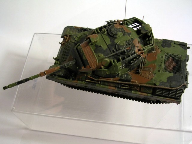 Měřítko: 1/72 Použitá stavebnice: Revell Lepty: Extratech (# EXV 72022) Barvy: Humbrol Kamufláž & marking: 2. Kompanie, PzBtl.74, Raum Schwanewede, 1998 Velice pěkný model prvního poválečného Germána. Žádné záludnosti na Vás nečekají a stavba je rychlá. Doporučuji použít lepty Extratech, hlavně kvůli masce kanónu, pletivu na motor a nářadí.Obtisky jsou na dvě verze tanku v efektní Evropské NATO kamufláži. |