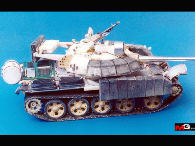 Měřítko: 1/72 Model vznikl jako konverze z T-54 od ACE, přičemž jsem použil kovovou hlaveň a leptané pásy od téhož výrobce. Jedná se o model tanku ze stavu Irácké 5.Mech. Div., jenž se v roce 1991 zúčastnila invaze d Kuvajtu. |