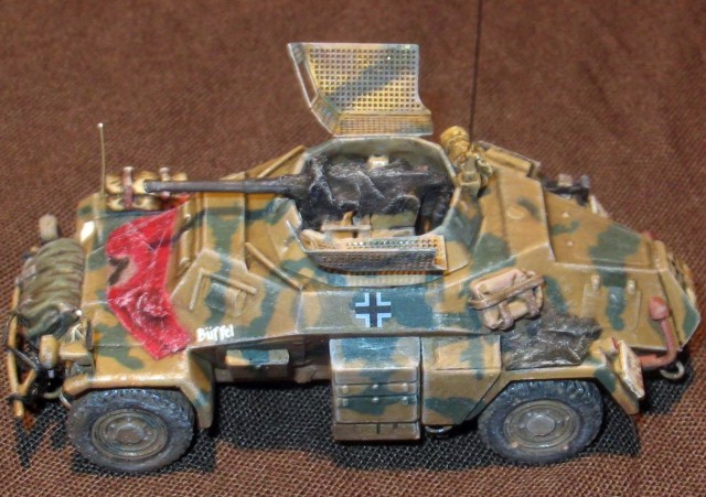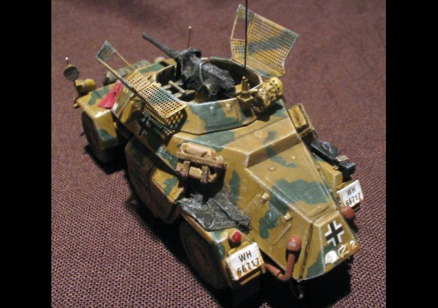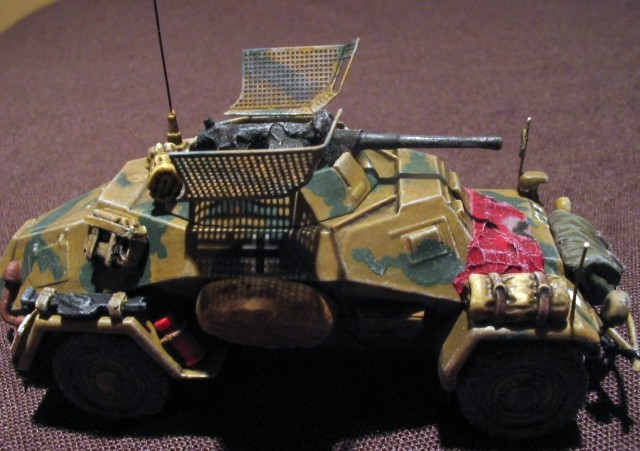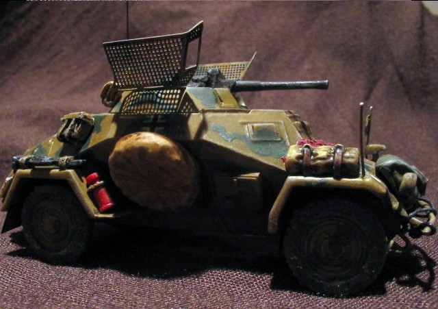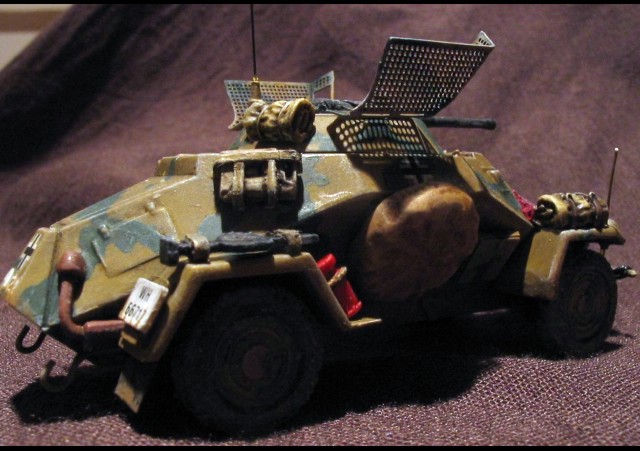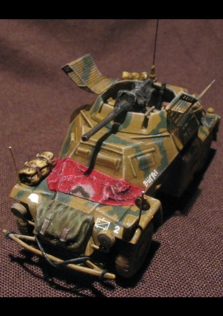 Měřítko: 1/72 Použitá stavebnice: Airfix Model postaven ze staré stavebnice. Nová jsou světla, tažné háky, přední pancíř, interiér vozu, boční a spodní úložné prostory a spousta dalších maličkostí jako rezervní kolo zabalené do celty. Za leptanou klec na věž děkuji Overlordovi. |