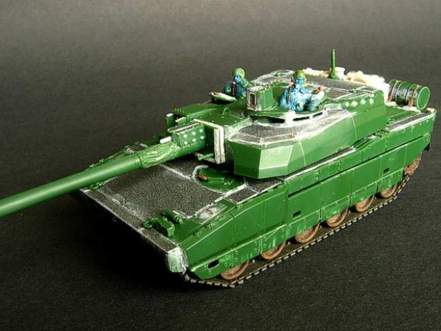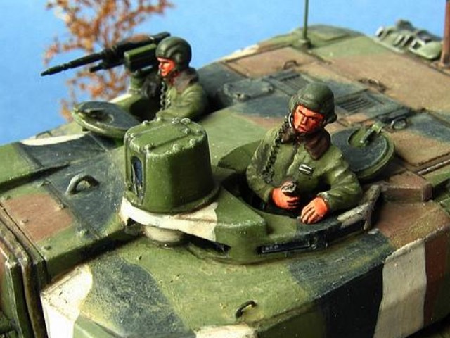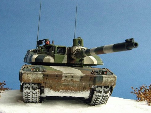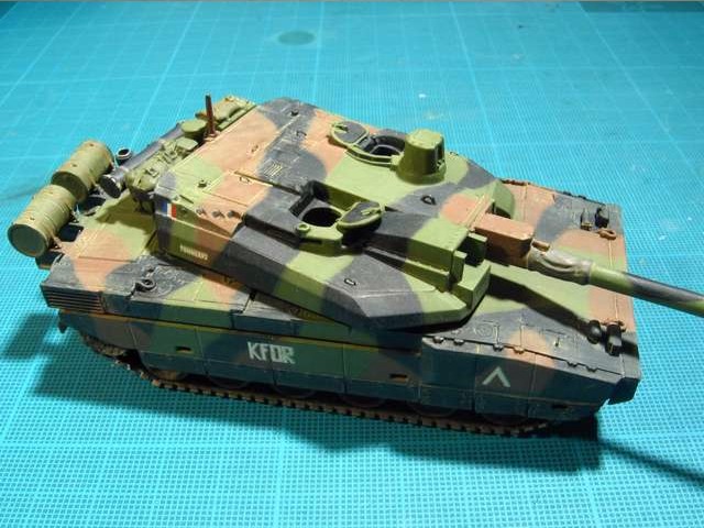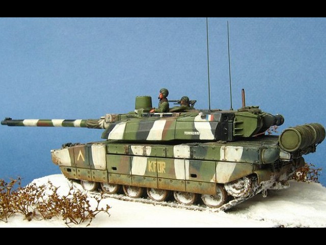 Měřítko: 1/72 Použitá stavebnice: Revell Model je postaven s následujícími úpravami. Na zadní část věže je doplněn držák na bagáž (resin od fy Azimut), drobné úchytky z drátku, nýty z platu atd. Tankisté jsou předělané figury od Preiseru. Předlohou modelu byl tank patřící 501/503e RCC (Régiment de chars de Combat) operující v Kosovu v zimě 2000-2001. Podkladem mi byly fotografie z časopisu "Raids". |