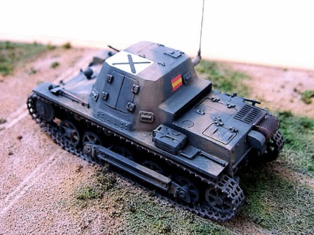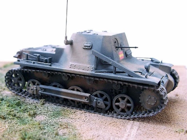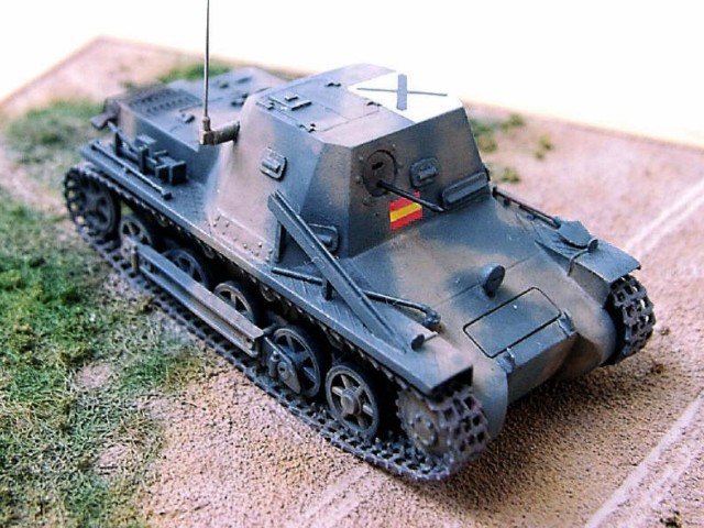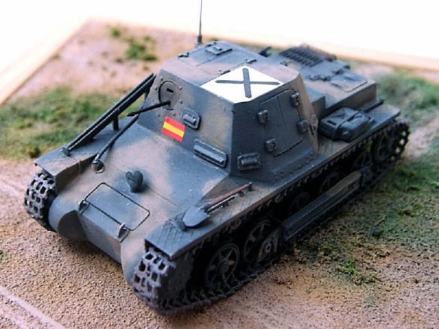 Měřítko: 1/72 Ke stavbě tohoto modelu jsem použil stavebnici od fy. ESCI, jenž je na dobu svého vzniku relativně přesná. Samozřejmě jsem provedl několik úprav, abych postavil starší "španělskou" verzi. Upravil jsem kulometné střeliště a stropní poklop.Na korbu za prostor osádky jsem vyrobil nové lamely z plechu. Při stavbě jsem použil vlastní pásy a hnací kola odlitá z resinu. Na závěr jsem přidal pro oživení nějaké nářadí (hever,nůžky ...) |