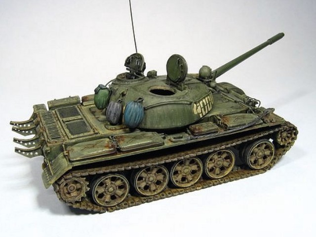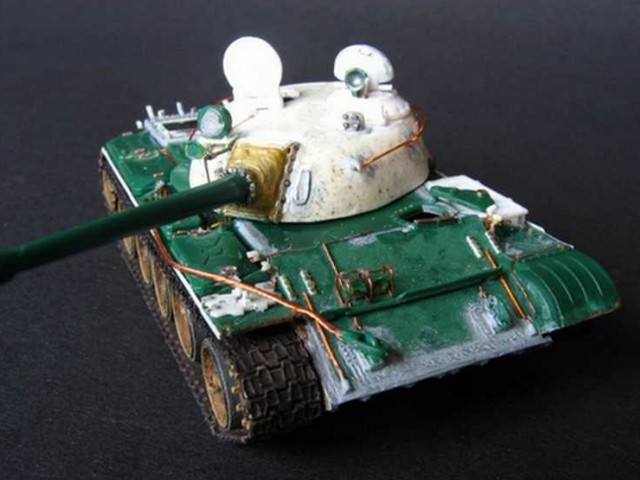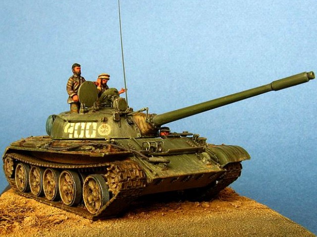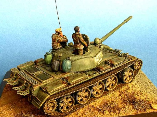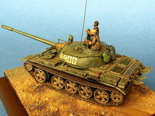 Měřítko: 1/72 Použitá stavebnice: PST & ACE Práce na této kombinaci stavebnic byla velice zdlouhavá, protože si vyžadovala řadu úprav a vylepšení z plastu, plechu, drátu …. Osádka tvoří opět předělávky figur od Preiseru. Model představuje tank afghánské Severní Aliance na cestě do Kábulu v listopadu 2001. |