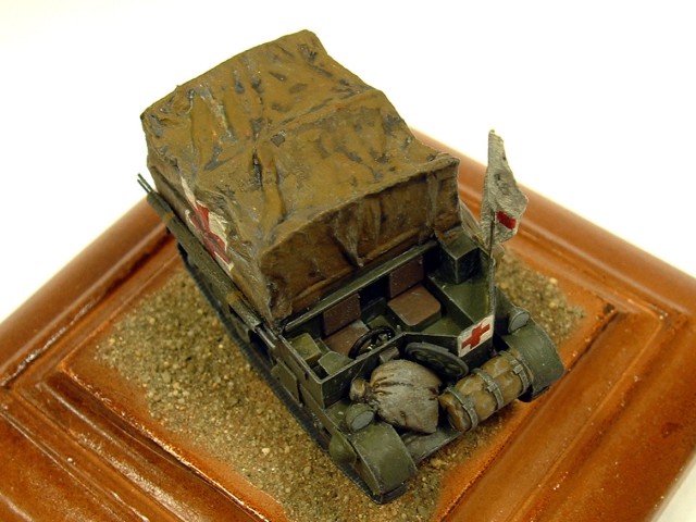 Miérka: 1/76 Použitá stavebnica: Aifix + novostavba Samotná puovodná stavebnica vyžadovala viac úprav ako samotna konverzia na sanitné vozidlo. Stavebnica je staršia a nie je to už žiadne terno, ale ked sa prestavia asi tak zo 70%, získate celkom milý model. Predlohu mojej sanitky som nasiel na internete. |