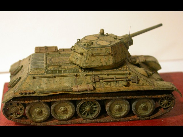 Měřítko: 1/72 Použitá stavebnice: Eastern Express Nejedná se o model kořistního tanku, nýbrž o jeden z několika ruských strojů, jenž byly před bitvou u Kurska opatřeny nátěrem zemitou barvou. Model je postaven z krabice, jen z několika drobnými doplňky. Do podvozku jsem přidal pár kol odlišného typu. |