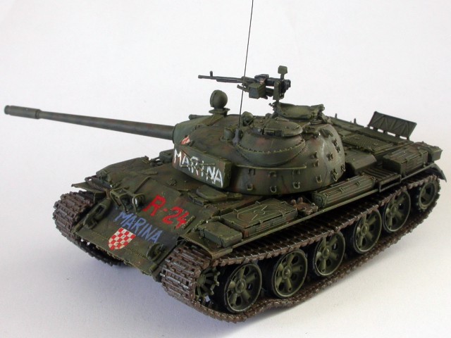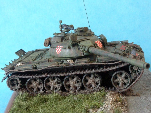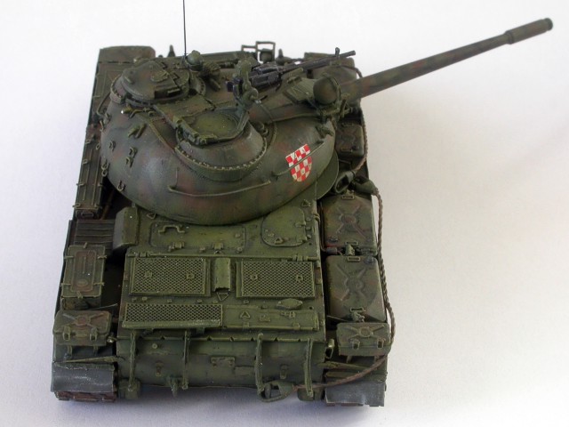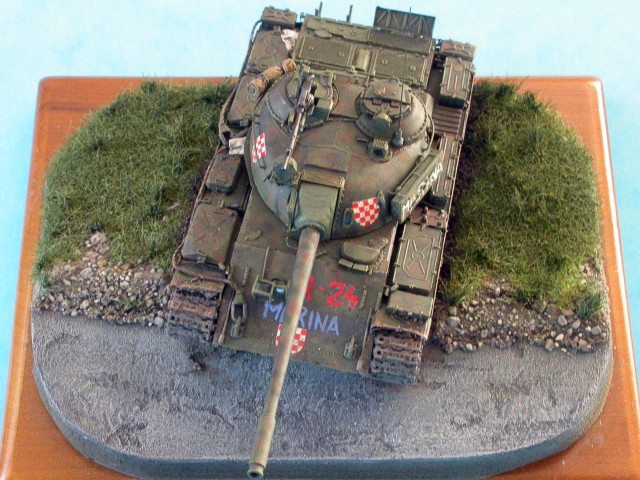 Měřítko: 1/72 Tento model téčka v atraktivní chorvatské kamufláži vznikl spojením korby a podvozku od PST s věží z produkce ACE. Jak vidíte na obrázcích, vylepšil jsem ho lepty od PArtu, kovovou hlavní od Arma a řadou dalších detailů vlastní výroby. |