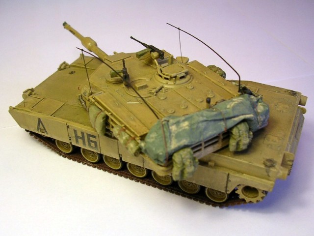 Měřítko: 1/72 Použitá stavebnice: Revell Barvy: Humbrol, Agama & pigment Star Dust Doplňky: CMK set MV 059 Tento model od Revellu mě poněkud zklamal. Až moc často jsem musel používat skalpel. Hlavně kus č.51 má naprosto nesmyslnou délku a musí se opravdu hodně seříznout. Díly 40 a 41 jsou silně z úhlu a je třeba zkrátit i osy hnacích kol. Jinak je stavba docela pohodová záležitost. Tento model představuje tank z 3rd Armored Cavalry Regiment - operace Desert Storm 1991. |