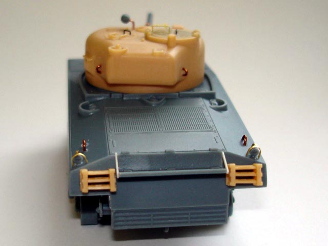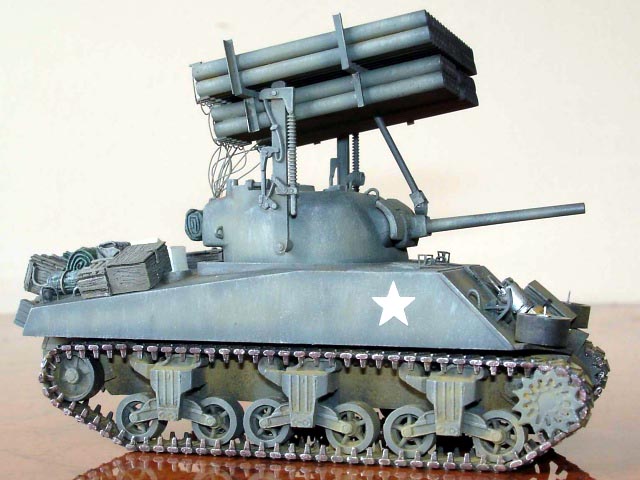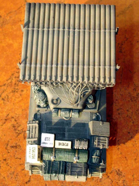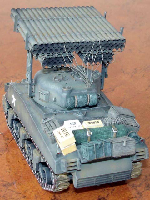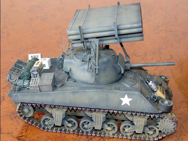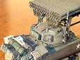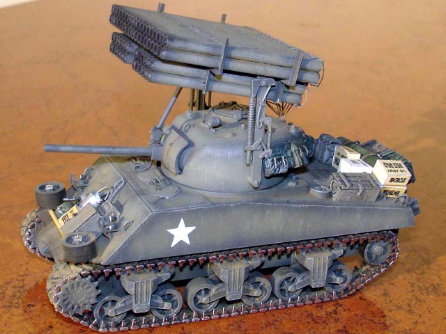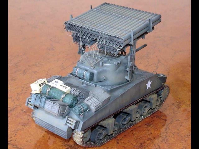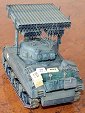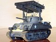 Měřítko: 1/72 Když jsem stavěl Dragon Wagona, tak jsem přemýšlel, co bych za něj mohl zapřáhnout. ve skříni jsem našel starý kit Shermanu Calliope od ESCI. Měl jsem také k dispozici nové Jumbo od Extratechu, kterému ale bohužel chybí podstatné pásy s nástavci, takže čekám na avizovaný kit od Dragonu. Obě stavebnice jsem tedy dal dohromady. Od ESCI je věž a vlastní raketomet a od Extratechu korba a podvozek. Samozřejmě jsem přidal řadu drobností a doplňků. například papírové krabice si tisku sám pomocí PC. |