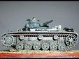 Ausf.L - Revell, StuG III Ausf.E - Attack Nejrozšířenější verzí tanku Pz.Kpfw III byla verze Ausf. J. Bohužel tento typ nikdo zatím nevyrábí, tak jsem musel přikročit ke konverzi. Základem všeho se stal velmi hezký kit Revell Pz.Kpfw III Ausf. L a StuG III Ausf. E od Attack. Původní tank jsem přeřízl za věží a celý středový díl motorového prostoru odstranil tak, že mi zbyly blatníky, zadní motorová část a přední partie. Vzal jsem StuG III E ze kterého jsem použil celou střední partii motorového prostoru, kterou jsem obdobným způsobem vyřízl. Modely jsou rozměrově naprosto shodné, takže umístění motorové části od Attack na Revell nečinilo žádné potíže. Zadní kryty chlazení motoru jsem zmenšil a vyryl nové. Spoj dvou modelů jsem začistil a naznačil svár. Před věž jsem doplnil trojúhelníkový profil chránící spodní část věže. Tím byla korba Ausf. J hotova. Věž jsem upravil přidáním průzorů na bocích a upravením původního štítu kanónu. Vyzbrojil jsem tank ještě krátkým typem 5 cm kanónu Kwk 39 L 42. Tyto výrobky se zaformovaly a odlily. Celou korbu jsem pak bez problémů narouboval na podvozek Revell a dolepil všechny detaily jako jsou madla,háky, kulomety, světlomety a anténu. Doplnil jsem rovněž i části vezené výstroje jako jsou celty, kanystr, bednu a náhradní kola. Za vzor pro kamufláž mi posloužil stroj od 2.Pz.Divize s číslem 602 z Ruska 1942 v celo šedé kamufláži. K barvení jsem použil tmavou šedou Agama a vystínoval jsem tank olejovými barvami a suchým štětcem jsem zesvětlil hrany a plochy. |