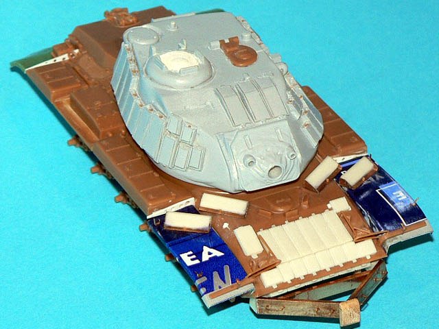 Základem modelu je M60A3 od Revellu. Na to je naroubovaná konverze od Goffy. Blatníky jsou z tuby od holícího krému, tažná lana od Karay a výstroj je obsažená v dostatečném množství konverzní sadě.