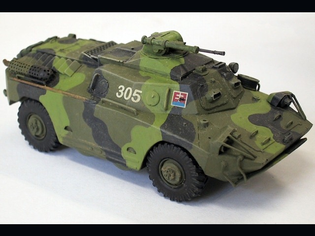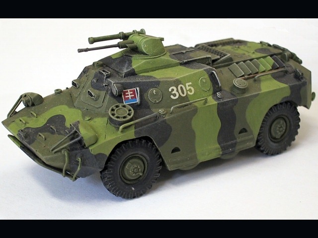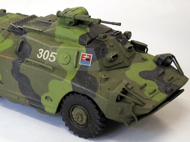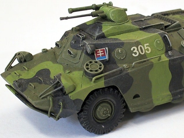 Model v atraktivní tříbarevné kamufláži Slovenské armády. Obtisky jsem požil ze stavebnice PSZH od téhož výrobce.