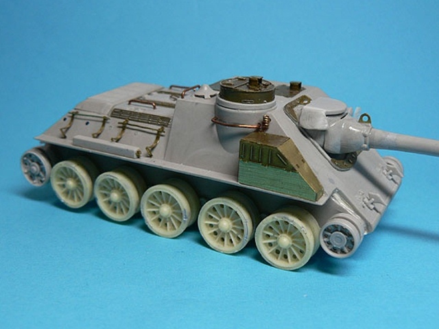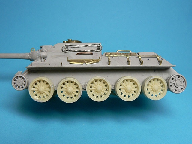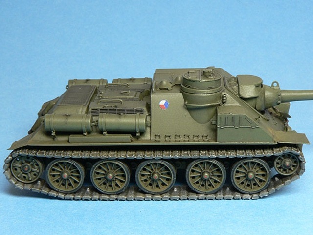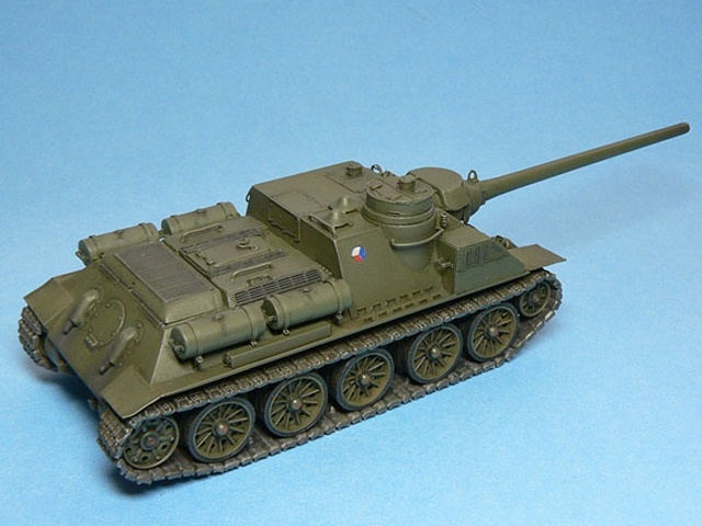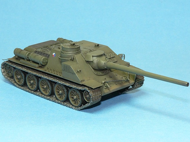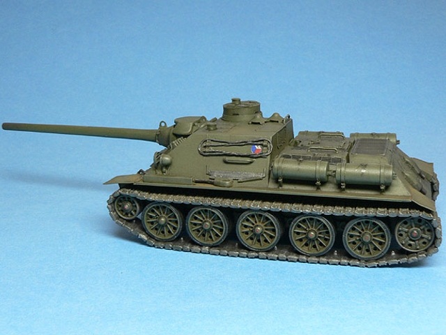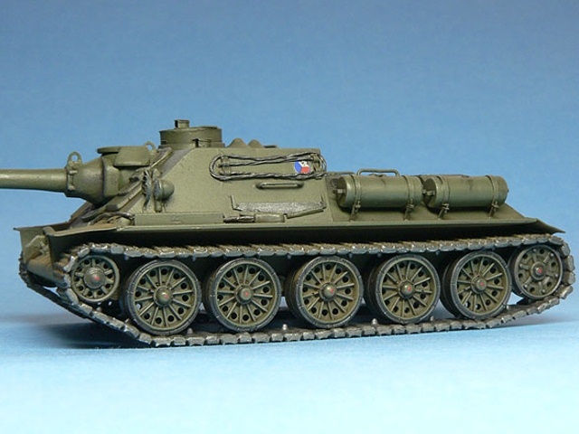 Měřítko: 1/72 Výrobce stavebnice: AER Moldova (SU-100) Lepty: Eduard 22019 pro model Cooperativa AER Moldova pro náš trh přebaloval Zlínek, později Cooperativa. Návod působí místy dost zmatečně, špatně se orientuje kam co přilepit. Díly jsou vcelku čistě odstříknuté, občas mírný otřep, drobné díly jsou někdy přesazené. Detaily na dnešní dobu nedostatečné. Pásy dělené na delší úseky i samostatné články. Pojezdová kola typu, který je ve stavebnici, jsem na žádné fotce nenašel. Největší chybou kitu je špatné zavěšení třetího pojezdového kola – je moc vpředu, odříznul jsem jej a posunul asi 2mm dozadu. Vodítkem při opravě bude výkres nebo fotka jakékoliv T-34. Z T-34 byly také převzaty „paprsková“ pojezdová kola s gumovou obručí (nechal jsem si udělat kopie z T-34/85 od firmy Revell). Druhou viditelnou vadou ex-ruské stavebnice je absence podběhů, díry nutno zaslepit plastem. Vana se lepí z více částí, vše moc nesedí, musí se hodně tmelit, sem tam vypodložit plastem. Všechny madla z plastu je záhodno nahradit drátem, jsou trošku přesazené a stejně naše poválečné SD měly madla trochu jinak umístěné. Lepty Eduard padnou jako ulité a výrazně pomůžou vzhledu modelu. Také pomůžou s díly na SD-100 – například schrána na pravém boku, hranaté přední blatníky a podobně. Kromě tažných lan, držáků a různých drobností jsem vyrobil znova i nádrže z kousku rámečku, protože ty ve stavebnici za moc nestojí. Obtisky – kokardy - mi vytisknul kamarád (díky, Mirku!). Stavebnici nedoporučuji, nestaví se lehce a spoustu dílů musíte vyrobit znovu, ať už stavíte válečnou SU-100 nebo naši poválečnou SD-100. Myslím, že ta spousta času, který vám oprava zabere, za to nestojí. Taková stavebnice SU-100 od firmy UM, to je prý nebe a dudy… |