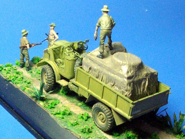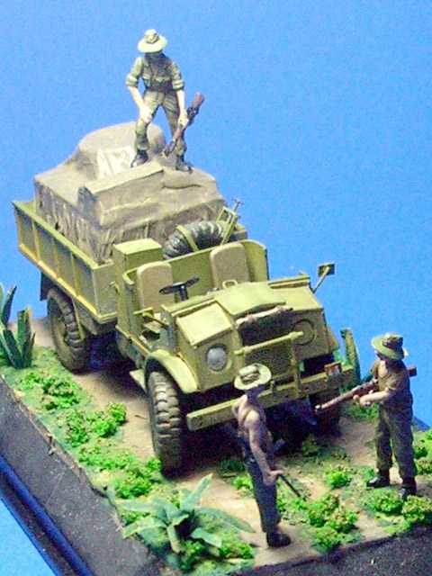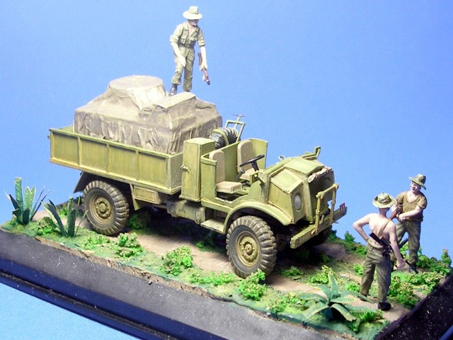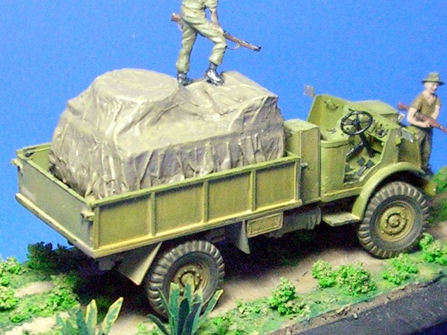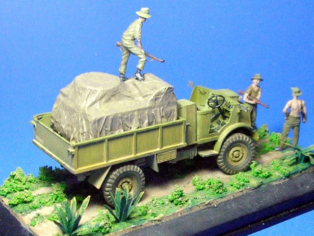 Model přestavující lehký náklaďák v australských službách vznikl jako novostavba na základě stavebnice "Morris" Quad od ESCI/Italeri.