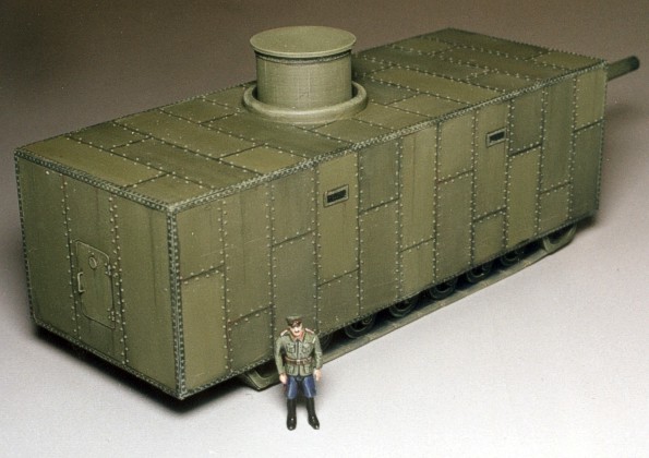 Měřítko: 1/72 Výrobce: KORA models, ČR Model je slepeny bez uprav přímo z krabičky. Originál tohoto tanku byl pouze projekt V.D.Mendělejeva a nikdy nebyl realizován. Vyzbrojen měl byt lodním kanónem a kulometem. Před výstřelem se měla všechna kola stáhnout do vnitřku korby a cely tanky tak ležel celou svou plochou na zemi aby docílil co největší stability. |
