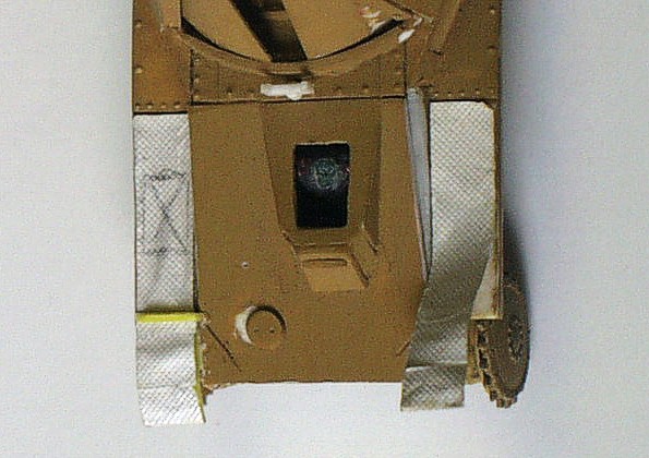 dostupného materiálu, papír z vnitřku krabičky od cigaret. Papír je sám o sobě příliš slabý, proto ho na patřičná místa na modelu aplikuji většinou vyztužený